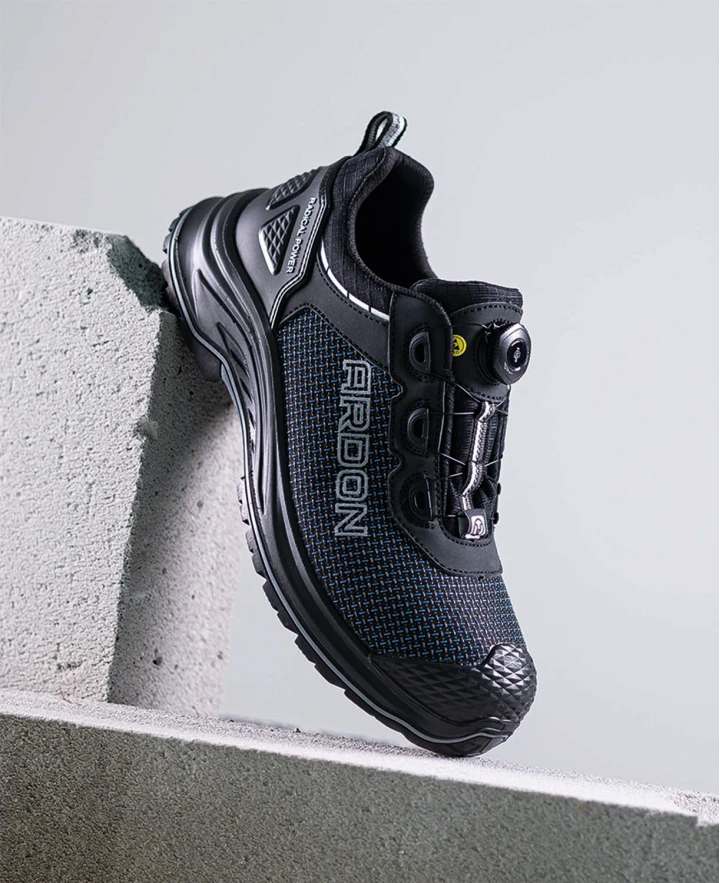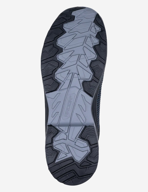 Підошва PU/гума, виготовлена методом прямого інжекційного лиття, забезпечує чудове зчеплення з поверхнею, стійкість до стирання, масел і високих температур до 300 °C. Спеціальний протектор підошви, що нагадує зимову шину, забезпечує стабільність і надійне зчеплення навіть на складній поверхні.