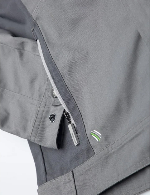 Куртка виготовлена з міцної тканини полотняного переплетення, що відзначається високою стійкістю до розтягування та розривів. У зонах підвищеного навантаження використано потрійні шви, які підвищують довговічність виробу.